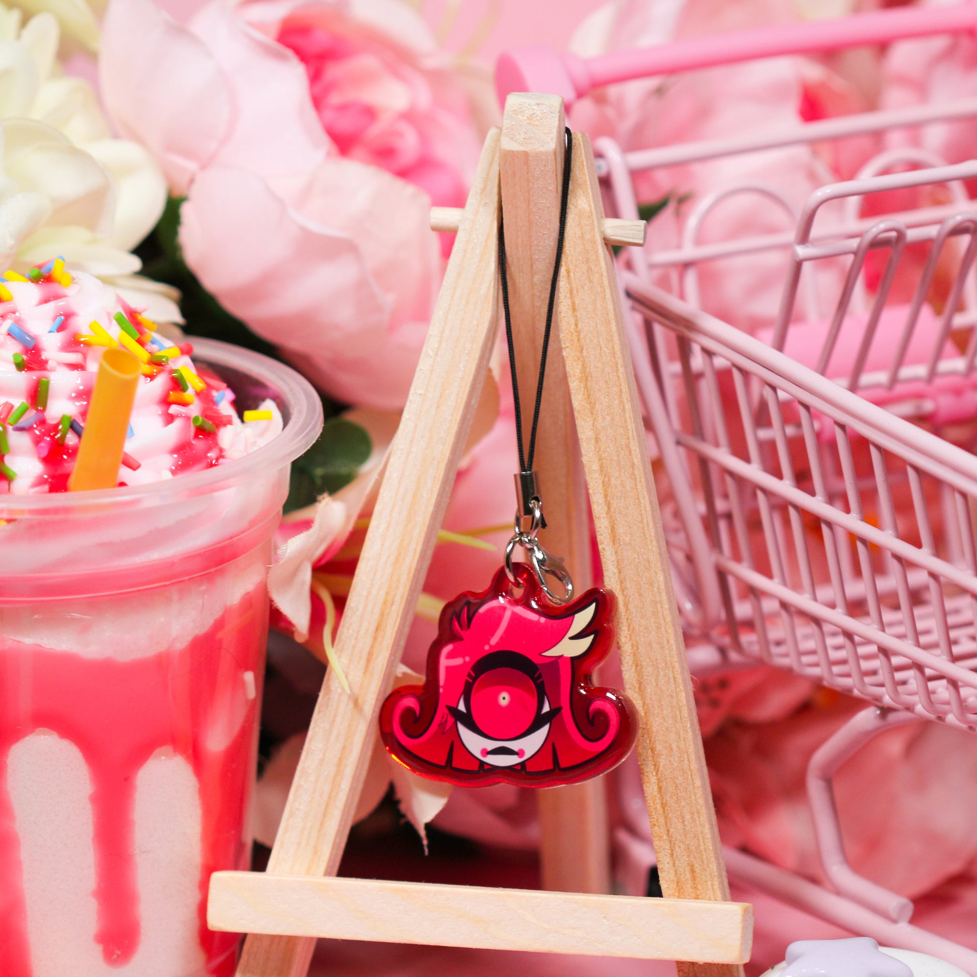 - Comes with a black phone-charm attachment to easily hang from your phone case!
